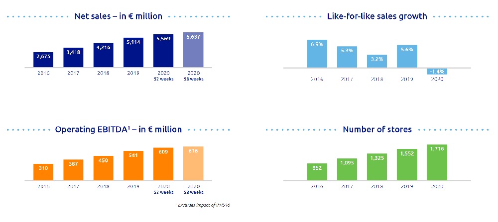 Il modello di business si basa su prezzi molto convenienti, un’offerta di 6.000 referenze composta da articoli di marca e private label divisa in 14 categorie di prodotto (pet, diy e giardinaggio compresi) e superfici di vendita di 8/10.000 mq.