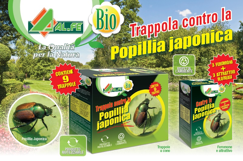 Alfe presenta la trappola biologica contro la popillia japonica – insetto di origine giapponese le cui larve sono sempre più diffuse soprattutto nel nord ovest italiano – che agisce in modo naturale sul comportamento riproduttivo del coleottero e ne permette la cattura.