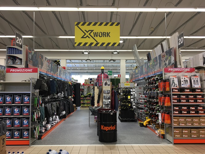 Sul lato sinistro e centrale troviamo invece il mondo tecnico del brico, compresi i corner X Auto e X Work (dedicato all’abbigliamento tecnico e da lavoro, le protezioni e l’antinfortunistica).