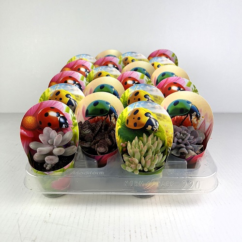 Emanuela Ballardini: Diamo la possibilità al cliente di personalizzare le cover in funzione delle proprie esigenze. Può inserire il nome e il logo del negozio e utilizzare immagini e stili in funzione della linea di prodotti o del periodo: per esempio in occasione di Natale, Pasqua o altre ricorrenze. Il cliente può anche scegliere tra una gamma di vasi con fasce di prezzo differenti. Nella linea basic usiamo il normale vaso di produzione, ma l’offerta comprende vasi di plastica colorati, di terracotta o ceramica con maggiori plus in termini di design. Noi stessi cerchiamo di abbinare i vasi con le piante, per esempio affinando la sfumatura del colore del contenitore con quello della composizione o della singola pianta. Oltre alla qualità del prodotto, cerchiamo di personalizzare l’offerta per dare la possibilità ai clienti di distinguersi sul mercato.