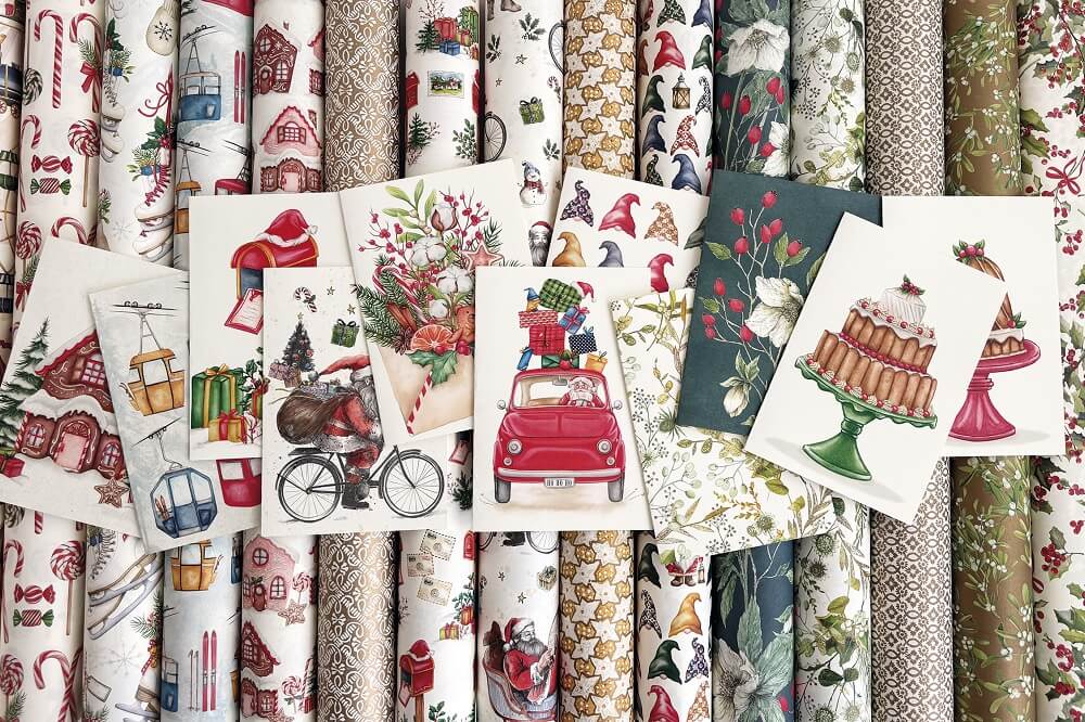 Tassotti cattura l’essenza dell’attesa con due nuove fantasie, in cui le illustrazioni sfoggiano uno stile unico e singolare, trasformando la semplice carta decorativa in un preludio di gioia: la fantasia Cassette delle Lettere, con un’immagine che racchiude tutta la magia della corrispondenza natalizia, e Babbo Natale in Arrivo, con un design che evoca l’attesa vibrante dei bambini nella notte più magica dell’anno.