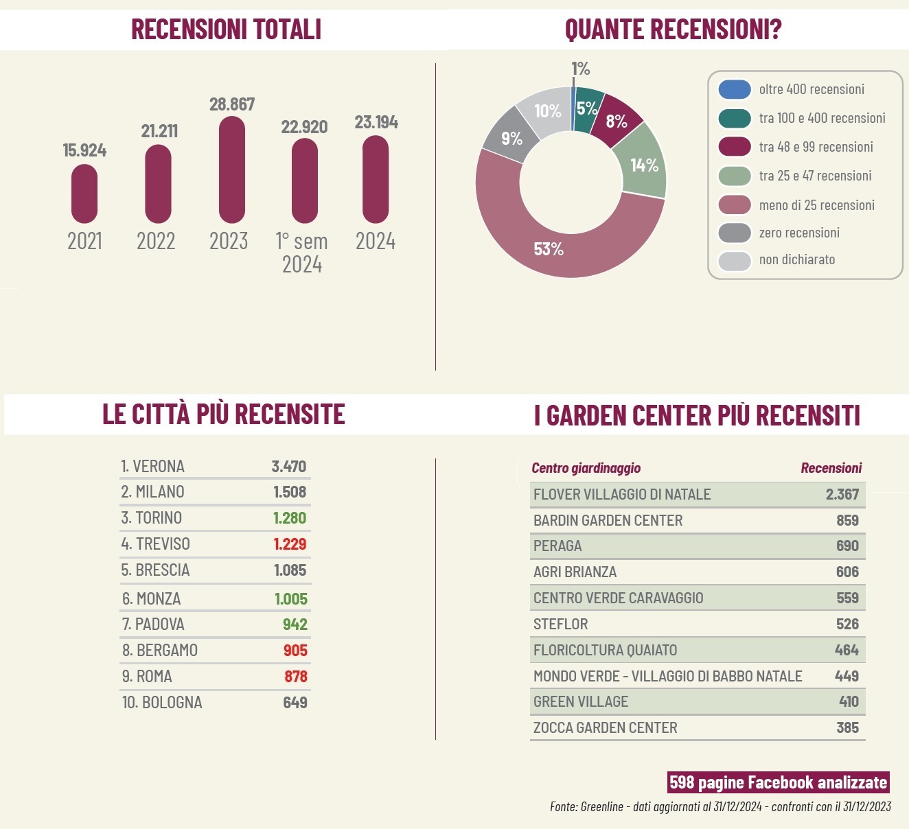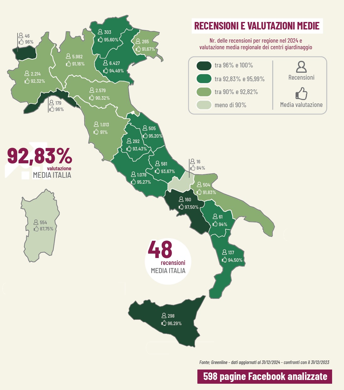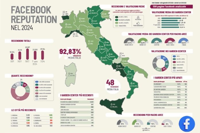 Continua a migliorare la Facebook reputation dei garden center in Italia (qui l’ultima rilevazione del 30 settembre 2024): abbiamo analizzato le recensioni e le valutazioni espresse dagli utenti su 598 pagine ufficiali dei centri giardinaggio italiani e il panorama che ne esce è molto positivo, con picchi di eccellenza.