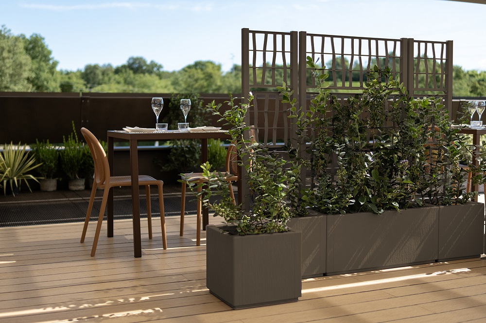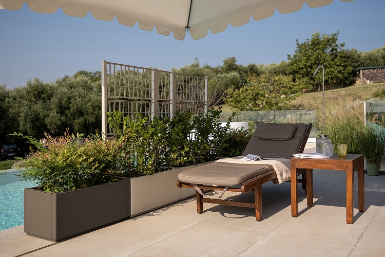 Elemento distintivo della linea è la spalliera, ispirata al design di un separè moderno: una soluzione raffinata che consente di schermare con discrezione, creare privacy e definire gli spazi con leggerezza visiva. Ideale per terrazzi, giardini e ambienti contract, Ethica trasforma il verde in un vero elemento d’arredo.