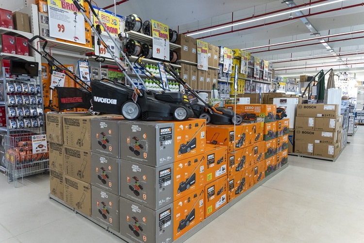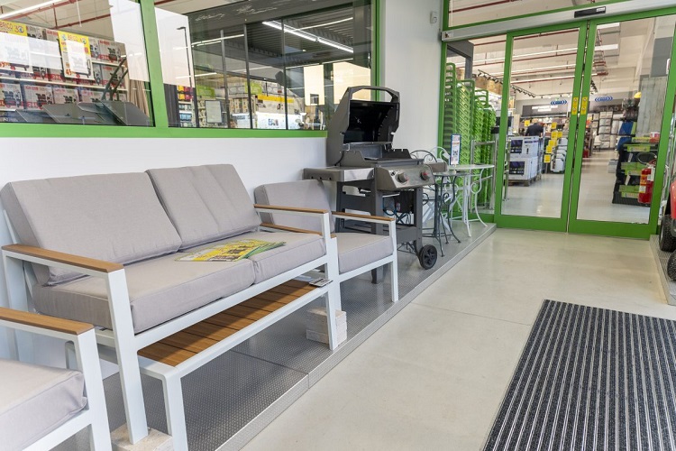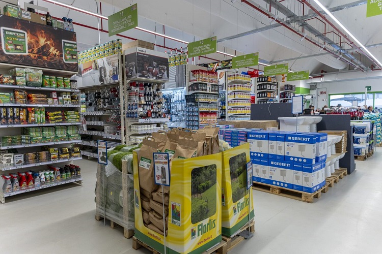 Il negozio, oltre a un’ampia area esterna dove trovano spazio i prodotti per il giardino, presenta questi principali reparti: ferramenta, utensileria manuale ed elettrica, illuminazione, articoli per impianti elettrici o idraulici, pavimenti in legno e linoleum.