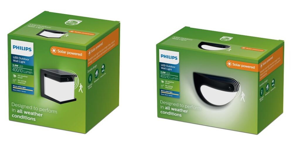 Completano la proposta solare le soluzioni più compatte: le applique Diara e Swyn, entrambe con luce calda a 2700 K, sensore di movimento, funzione crepuscolare e batteria sostituibile, ideali per giardini e balconi, e il proiettore Fyns Solar Security Light, che con i suoi 1000 lumen offre sicurezza e visibilità anche in spazi ampi.