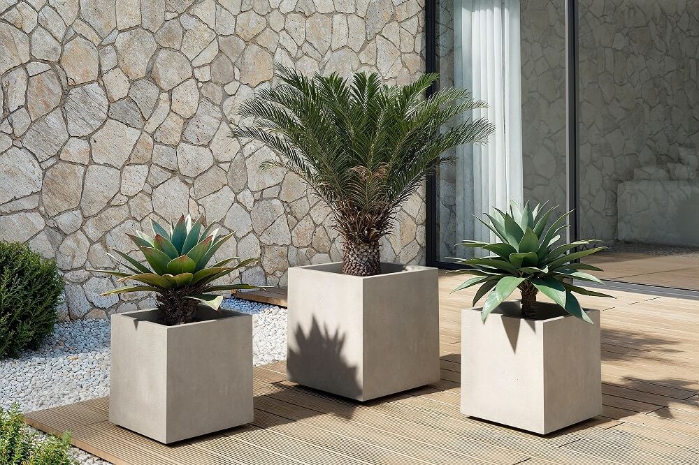 Una proposta equilibrata e versatile di vasi e fioriere per esterni e interni, anche di grandi dimensioni, con spiccate qualità di leggerezza, maneggevolezza, robustezza e rea­lismo estetico.